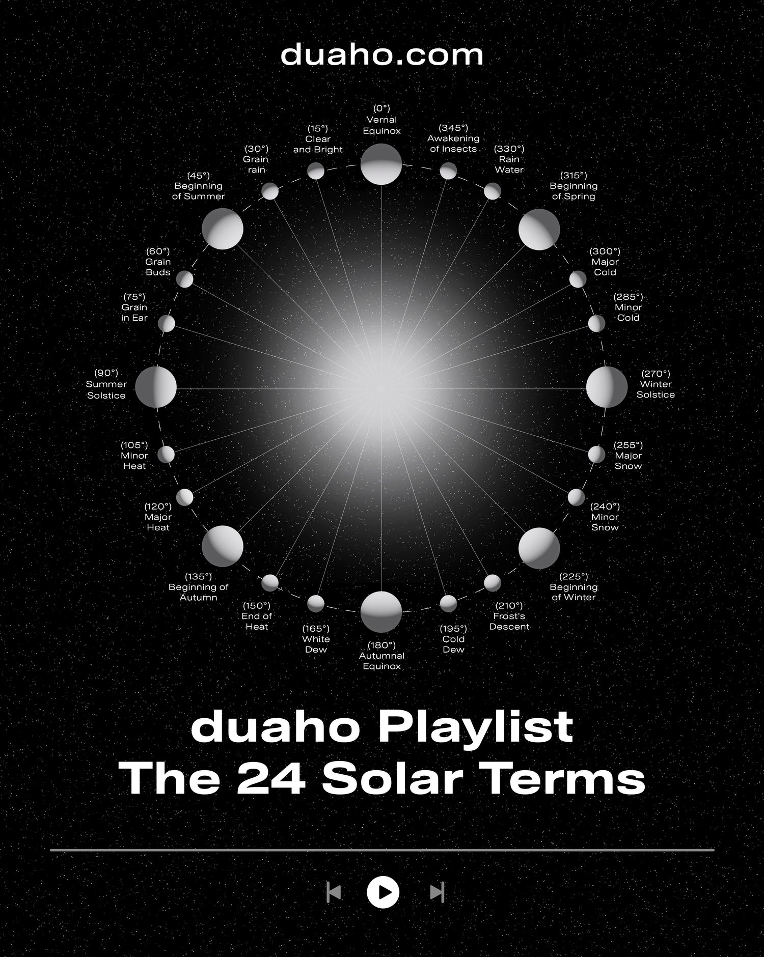 以秋分為起點,展開 duaho 的24節氣歌單計畫。每一期,以一個節氣作為時間刻度,讓聲音與時間並行,建立生活的內在節奏。