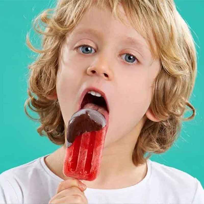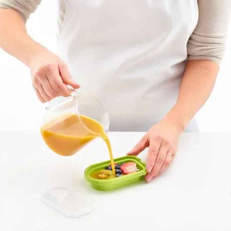 ※ 將已調配好的果汁或鮮奶倒入模具中,扣緊上蓋後即可冷凍;亦可視需求以水果、香草、巧克力等裝飾冰棒。
