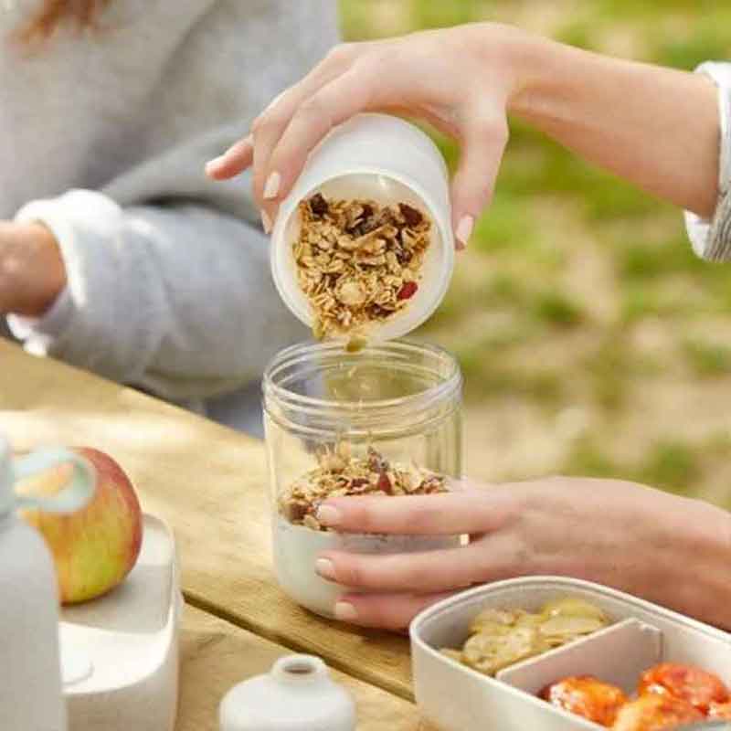 ※ 密封膠條設計可防塵、維持保鮮;內附矽膠摺疊杯可獨立使用,盛裝醬料、堅果等。