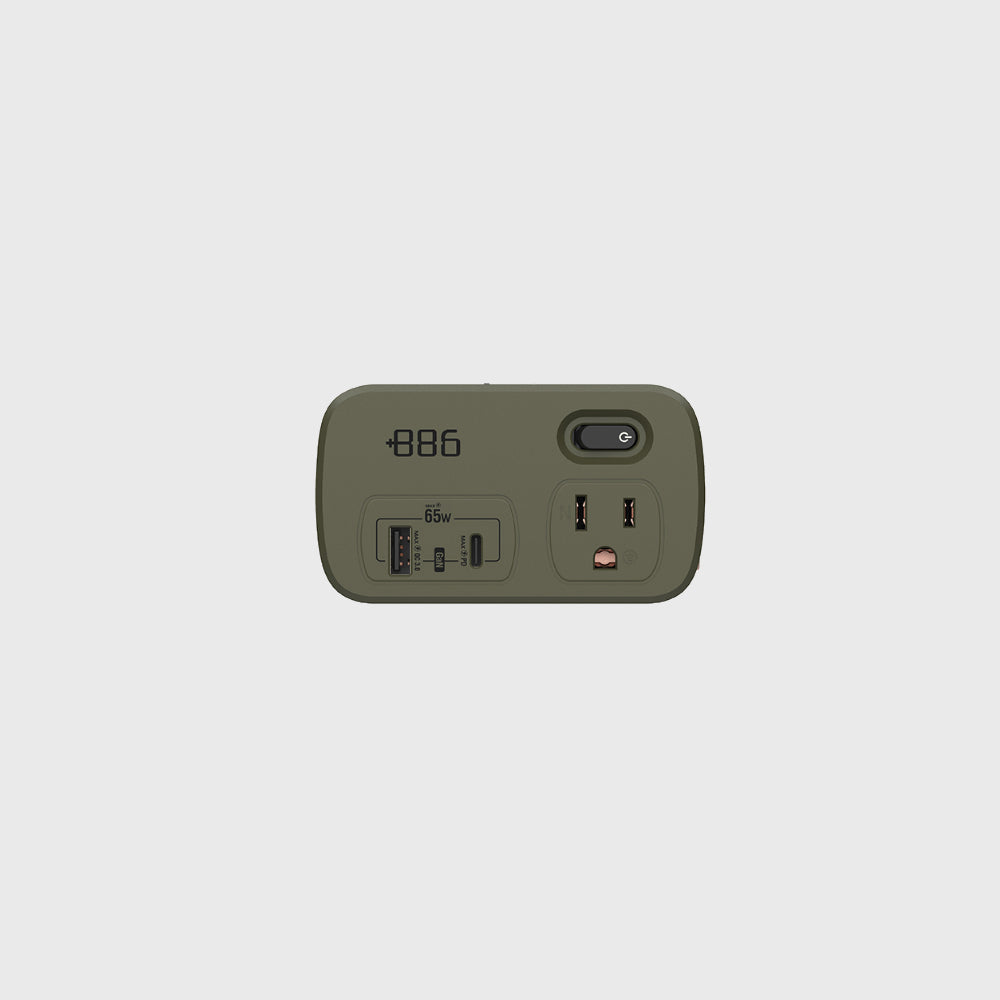 +886|HWS2123 1開2壁插轉接器USB-C+A PD 65W 軍綠