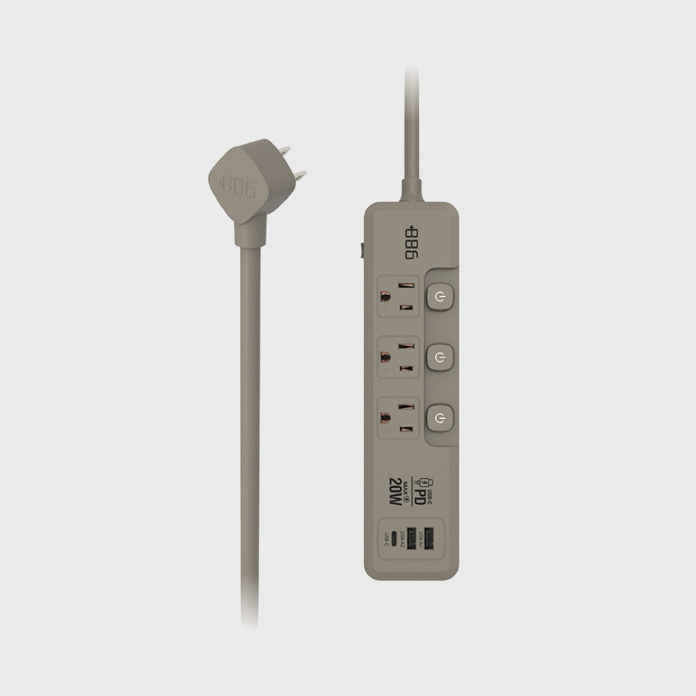 +886|V2 HPS2332 3開3插PD 20W快充延長線 奶茶棕