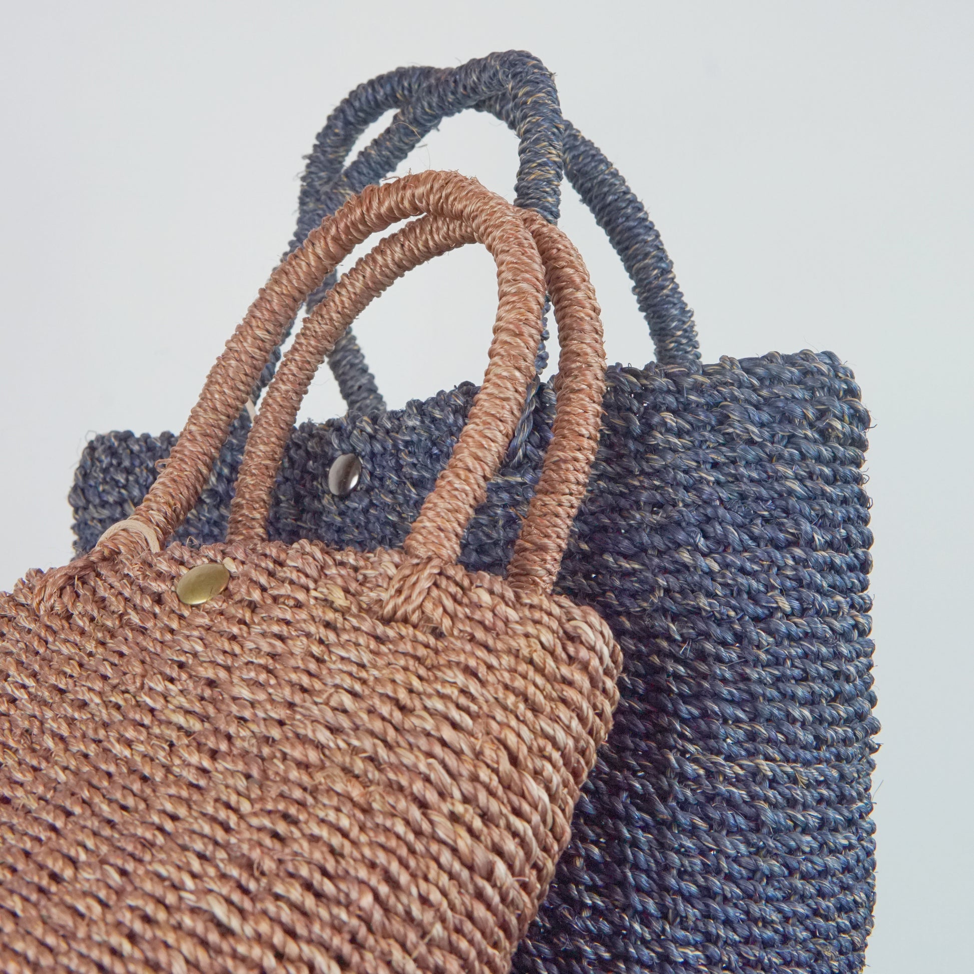 本質創作室與菲律賓職人合作產出,屬於現代生活型態的天然纖維包款。蕉麻提包,從自然纖維蕉麻取絲後,編股成線再透匠人手工編織成包袋。