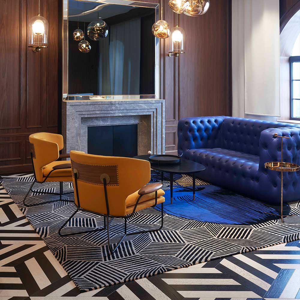 富有活力,充滿節奏感,直率而真實的全新地毯系列 - 紐約秋日,以Sophie Dariel的插畫創作延伸出七款豐富的設計,喚起人們對於紐約秋日的深刻印象。黑白相間的背景圖案巧妙刻畫了大都會的剪影,幾何色塊與線條交織出爵士樂律動的旋律,秋季也是紐約最富魅力的特別時節。漫步於中央公園中,亮黃的銀杏樹映襯著高藍的天際,清新自然的氣息如金蘋果般亮眼。紐約秋日地毯系列捕捉了這些如夢似幻的場景。鮮甜可口的秋季果實,光影斑斕的林蔭,豐富的強烈色彩… 本系列以詩意的圖像回應了名伶比利·哈樂黛(Billie Holiday)的經典曲目:“Autumn in New York, why does it seem so inviting?」 (紐約的秋天,為什麼看起來如此迷人)?