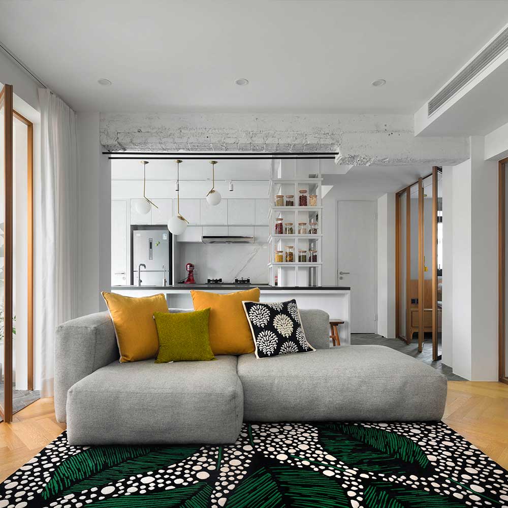 富有活力,充滿節奏感,直率而真實的全新地毯系列 - 紐約秋日,以Sophie Dariel的插畫創作延伸出七款豐富的設計,喚起人們對於紐約秋日的深刻印象。黑白相間的背景圖案巧妙刻畫了大都會的剪影,幾何色塊與線條交織出爵士樂律動的旋律,秋季也是紐約最富魅力的特別時節。漫步於中央公園中,亮黃的銀杏樹映襯著高藍的天際,清新自然的氣息如金蘋果般亮眼。紐約秋日地毯系列捕捉了這些如夢似幻的場景。鮮甜可口的秋季果實,光影斑斕的林蔭,豐富的強烈色彩… 本系列以詩意的圖像回應了名伶比利·哈樂黛(Billie Holiday)的經典曲目:“Autumn in New York, why does it seem so inviting?」 (紐約的秋天,為什麼看起來如此迷人)?
