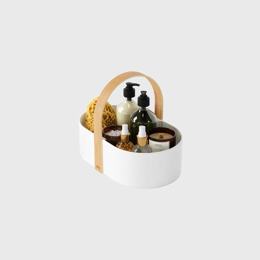 使用 Bellwood Caddy 整理您的日常必需品。可用於化妝品、護膚品、工藝用品、文具等。 Bellwood Caddy 易於清潔,如果您需要隨身攜帶,可透過整合式手把輕鬆拿取。其可拆卸的隔板可輕鬆整理和保持產品直立,底部橡膠腳墊可以保護您的表面免受損壞。