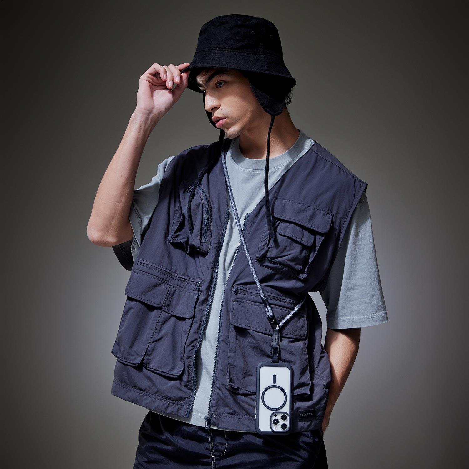 將高強度營繩作為掛繩材料,增添戶外風格與編織質感;上身輕量舒適,可拆解扣環成包袋的背帶使用