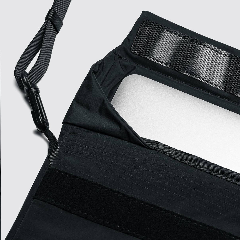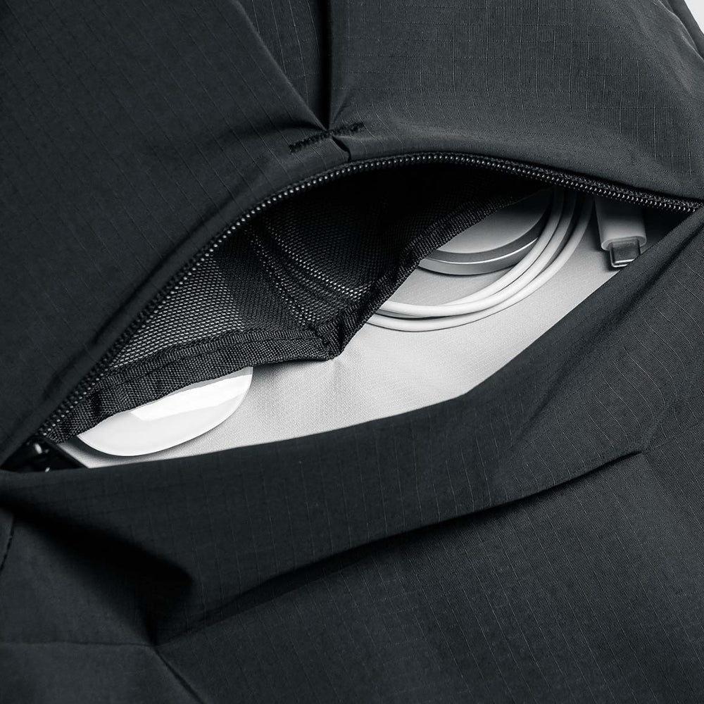 內部設有 5mm 潛水布內襯,不必擔心電腦遭受碰撞,提供全面防護。而潛水布上層選用 75D Polyester Fabric,提供抗靜電與耐磨等特性,確保產品在長期使用中依然可靠耐用。正面箱型摺設計的口袋能擴展容量,口袋內部的彈性網袋,能收納滑鼠、硬碟等小物。開口採用魔鬼氈設計,便於快速取用,上方蓋片有效防水,搭配鋪棉蓋片提供額外保護。而背面設有鋪棉行李插袋,方便將包包固定在行李箱上,提升旅行便捷性。正面短提把讓您輕鬆拿取包包。背帶則採用加寬版本的漫遊機能背帶,減壓透氣,提供舒適的肩背體驗。
