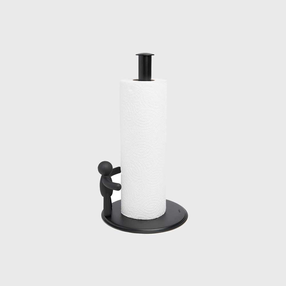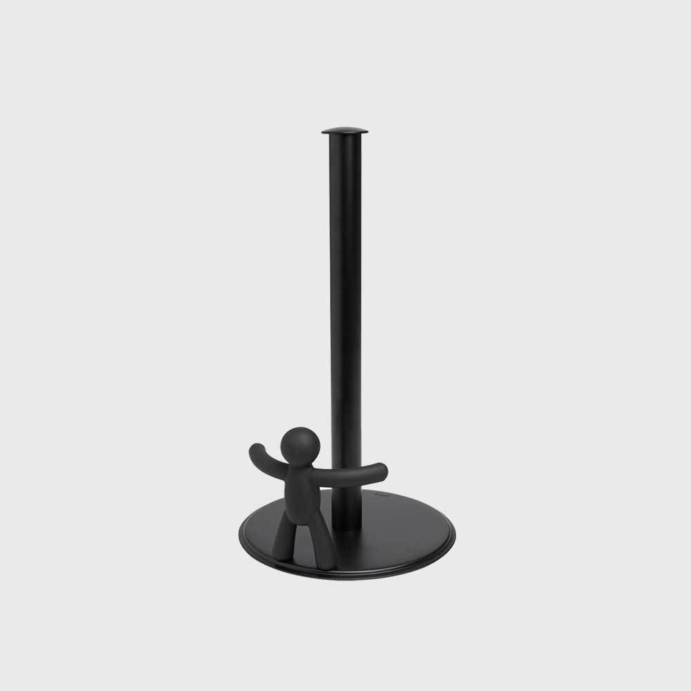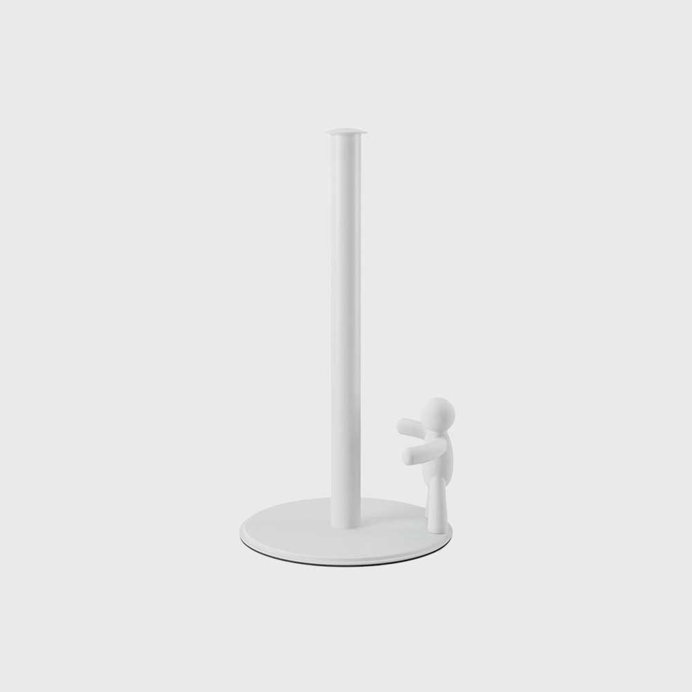 BUDDY 夥伴紙巾架除了獨特的外觀之外,還具有很強的實用性,模製的形狀為單手撕開時提供摩擦力和槓桿作用,並防止捲筒散開。佔用檯面空間小,清潔只需快速擦拭即可。尺寸為19 x 18 x 34 公分。採用再生塑膠製成,更環保。