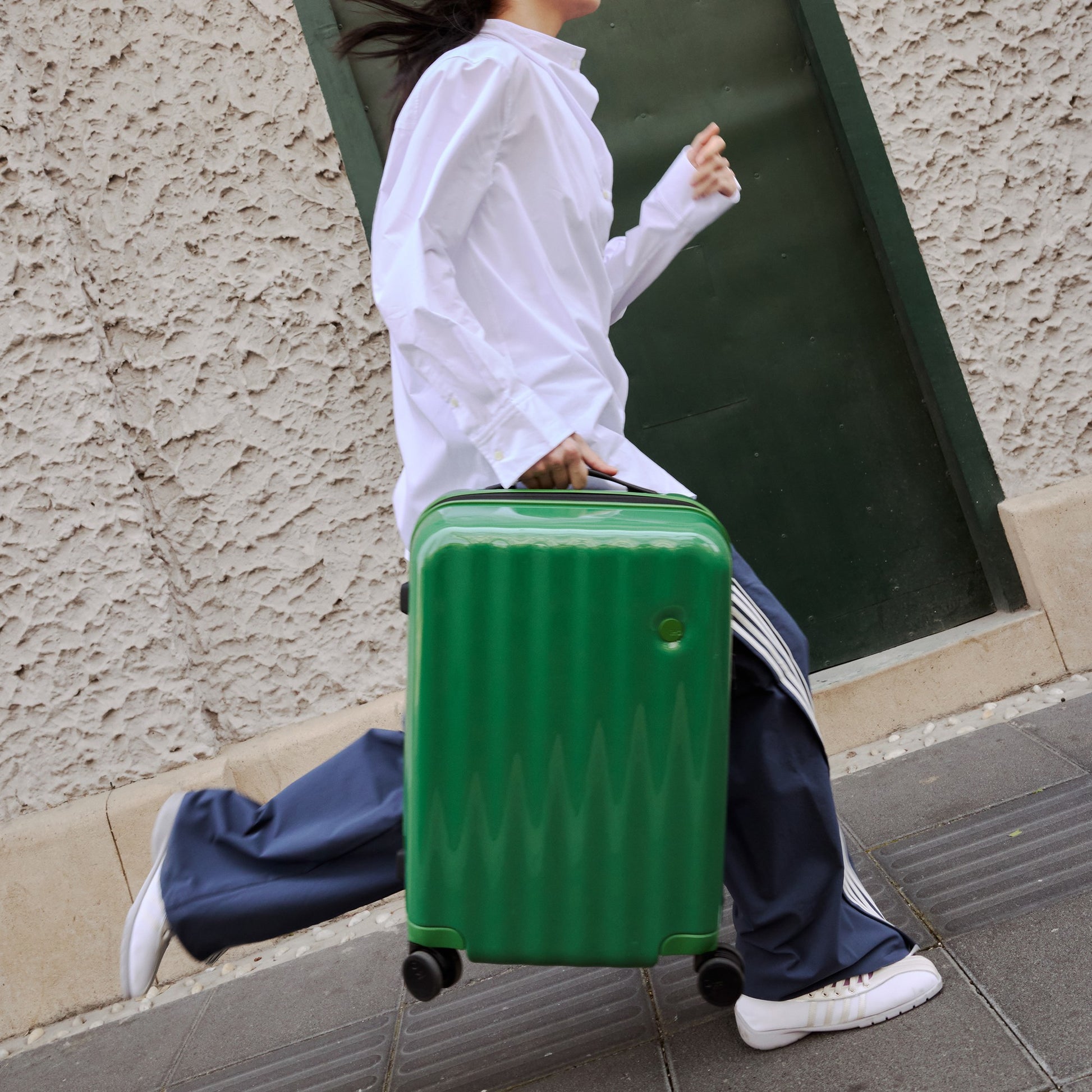 系列名WAVE,源自於箱體上的波浪紋理。設計師借鑒了石棉屋頂、瓦楞紙、波浪板等建材的設計原理,緩和的曲面帶來了更多的受力點,讓旅行箱無懼沖撞,超長待機。色彩靈感源自玩具積木,鮮艷飽和的色彩搭配,俏皮玩味,讓每一次旅行都變得充滿樂趣、彰顯個性。