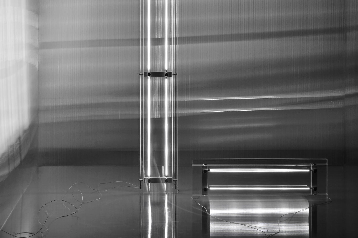 由金屬框架支撐的LED燈帶投射出的筆直光線,與外層的玻璃面板帶來不同的反射,空間裡的光讓它發生反應,而它同時也在微妙地改變著光線。整個燈具隨著不同的觀看角度產生無限的光影體驗。這也是電燈的設計緣由,它挑戰傳統燈具的照明目的並提出一種新的構想,即燈具本身的作用能否是創造一個特殊的體驗,用於提升空間的質感。 LED 燈帶的亮度可以通過遙控器遠程控制以適應不同的空間氛圍需求。