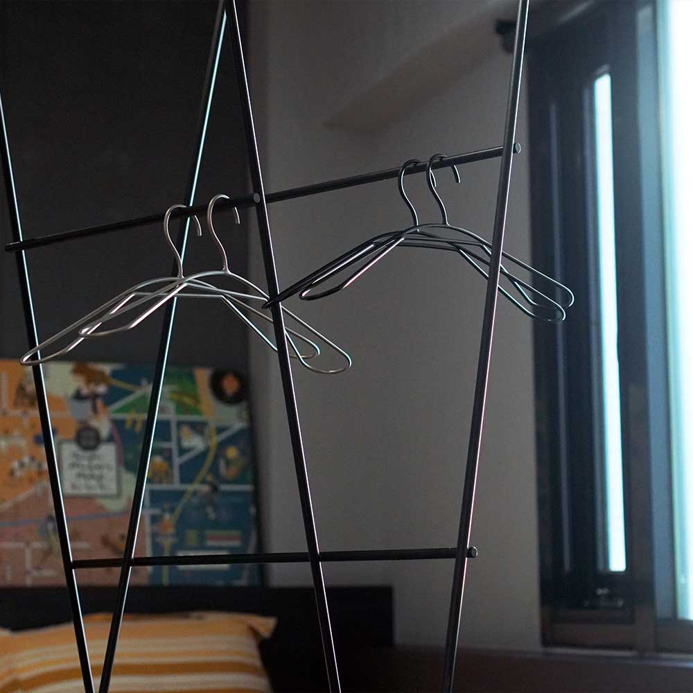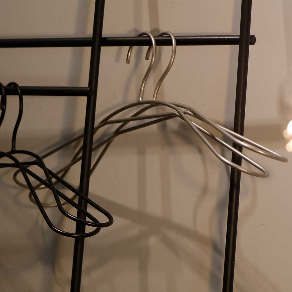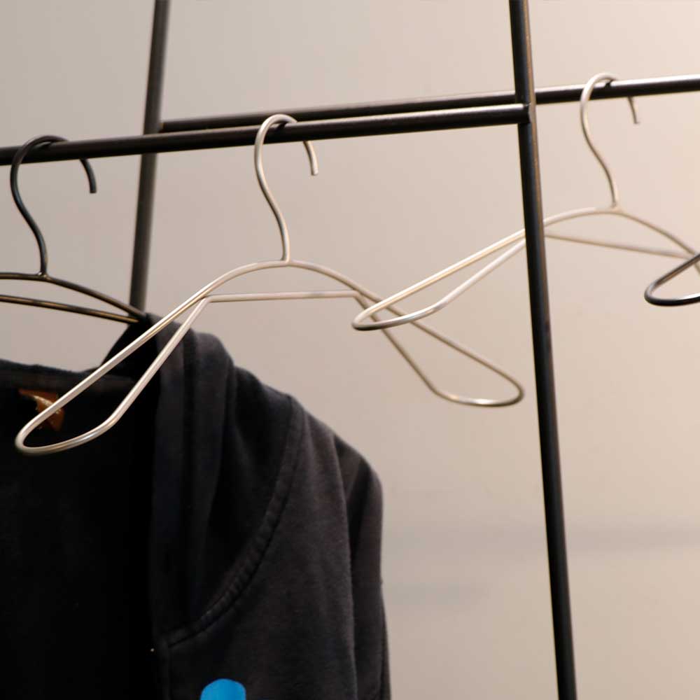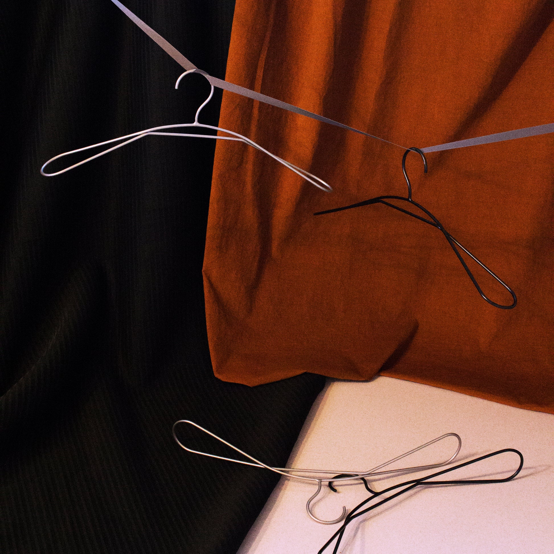 Looop, a versatile coat hanger, is formed by one continuous piece of steel wire. A series of three loops is drawn in the 3D space to shape a steady structure and extra-wide non-slip shoulders spontaneously. The clean and sleek design with a beautiful simplicity adds a modern twist for the wardrobe. Ideal for commercial display space and domestic use.