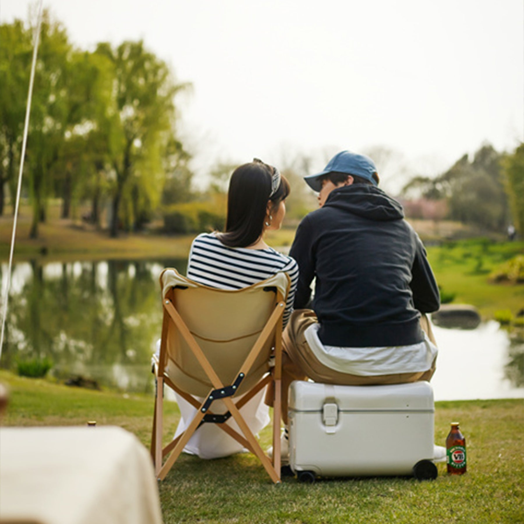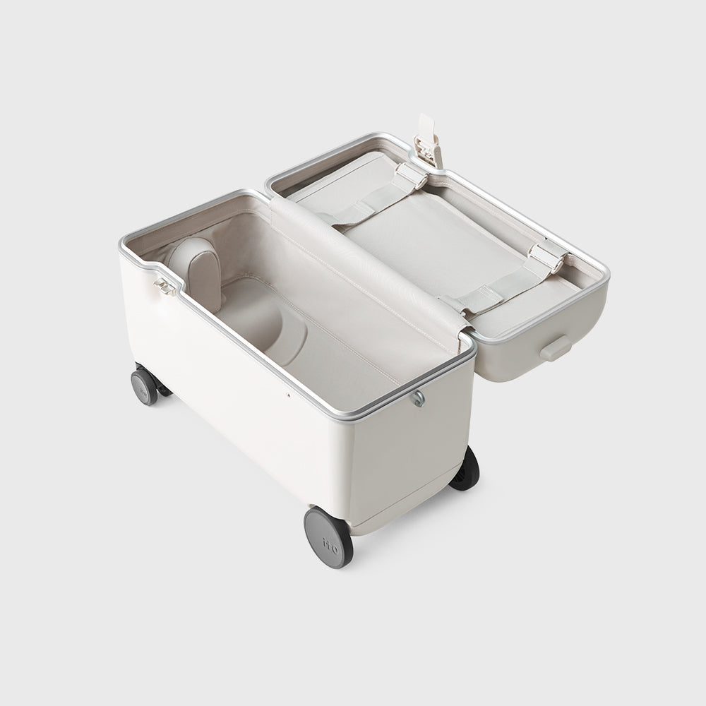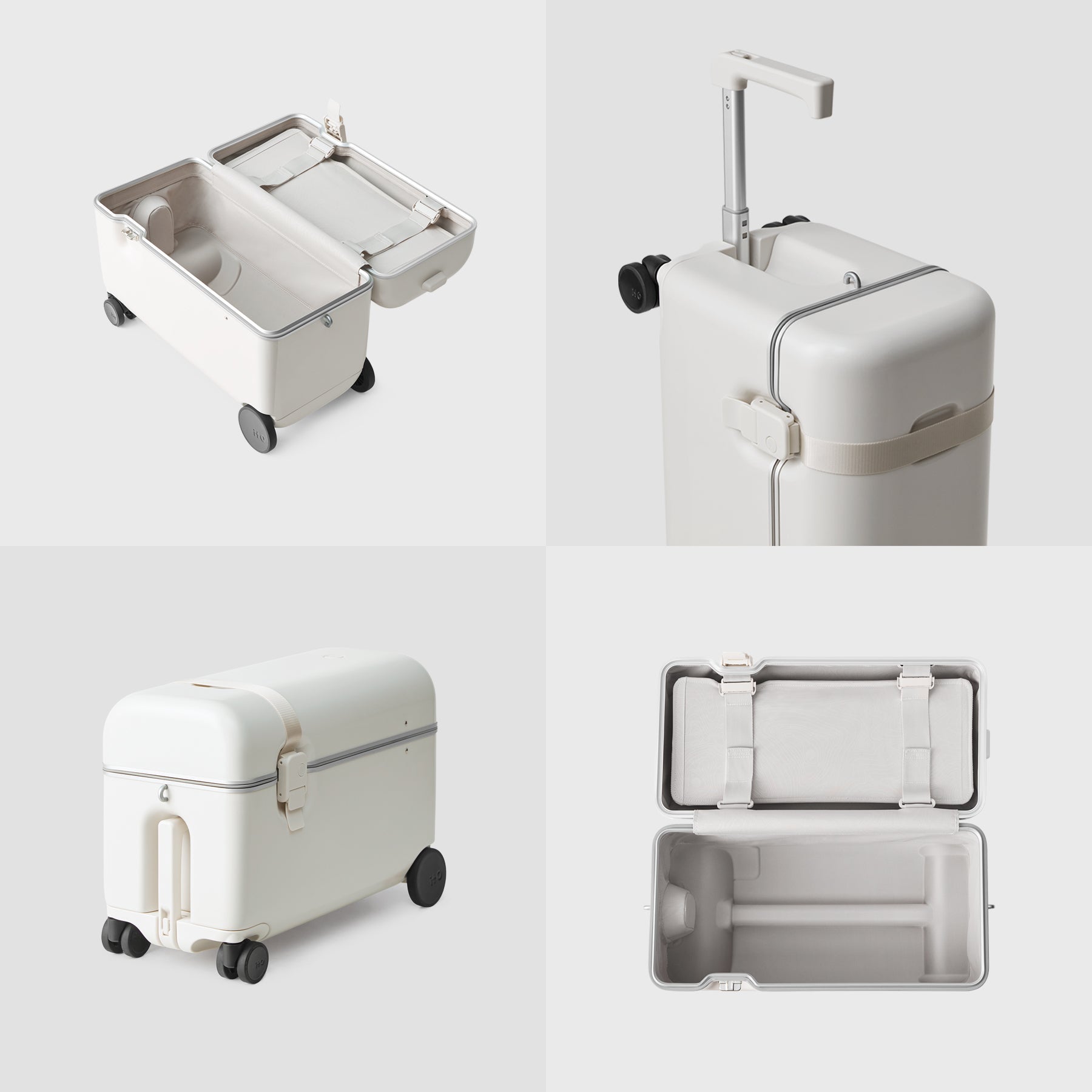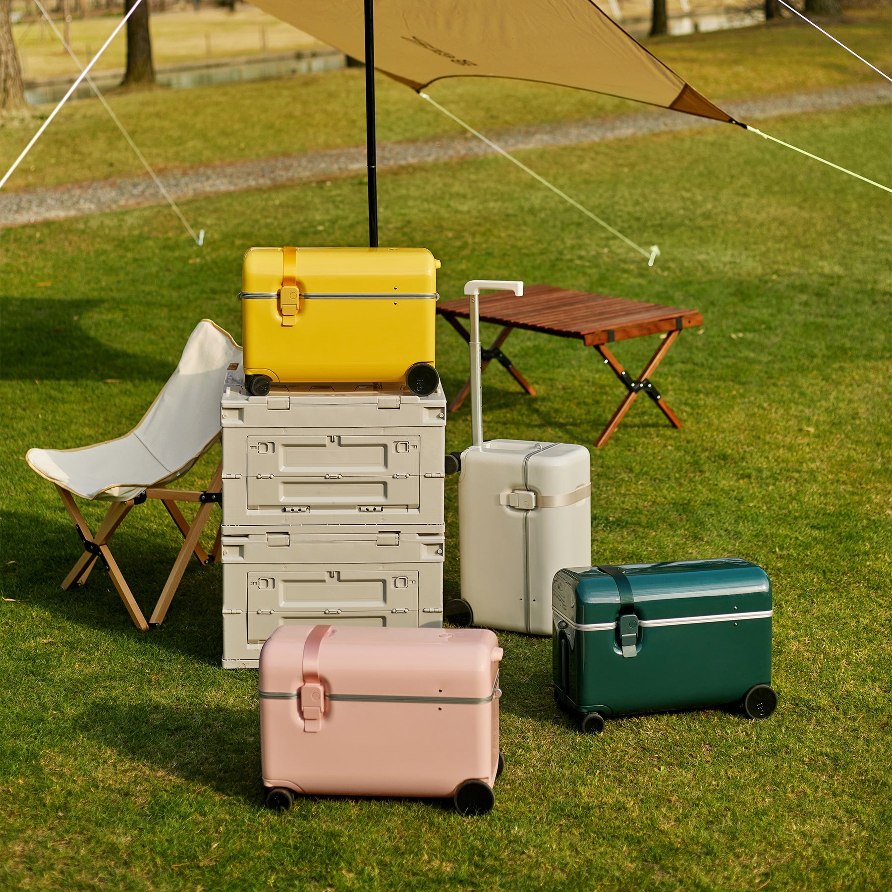 GINKGO WEEKEND 兒童箱可以作為孩子騎乘的騎行箱在較平坦寬闊的場景供兒童自己玩耍和管理。同時肩背的兩用背帶可轉換為牽引繩,讓家長可以在需要的時候較為輕鬆的帶著兒童和箱子一起移動,解鎖遛孩新姿勢。