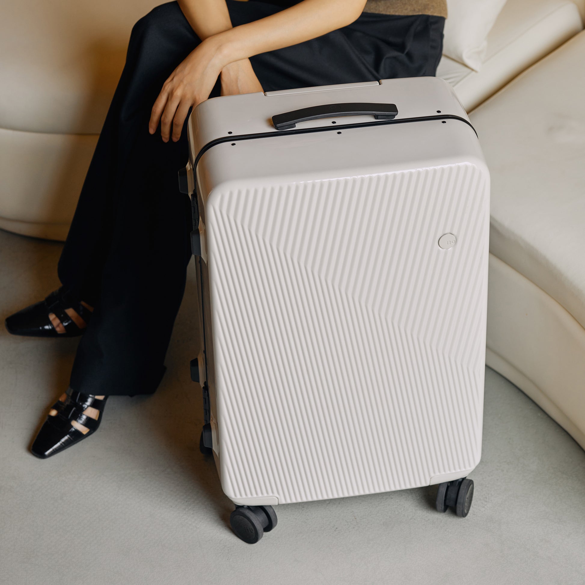 GINKGO的外觀設計語言,核心即是 “圓和方”。通過考究呼應的細節和有序致密的對撞斜紋肌理,表達整體靈動且優雅的東方魅力,產生更豐富多元與包容的情感認同。ITO專利的PEBBLE圓鎖設計,跳出傳統機械感掛鎖的操作方式,把視覺的語義和使用體驗相結合,讓用戶用自然直覺,打開旅行箱。