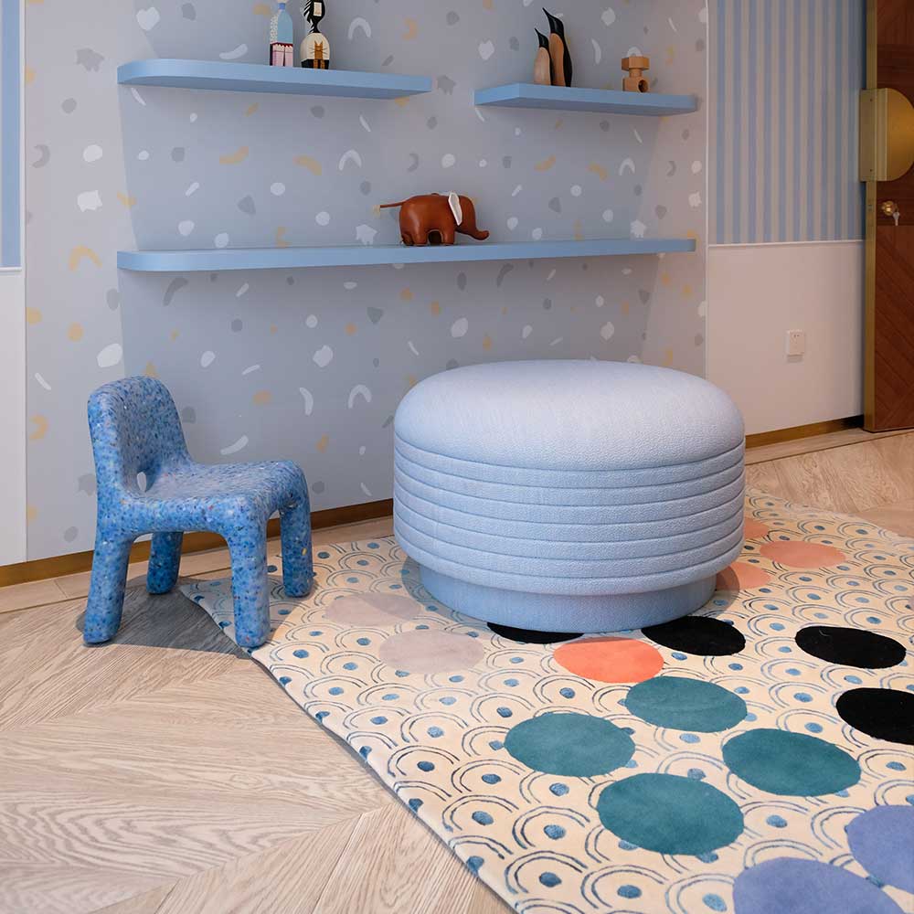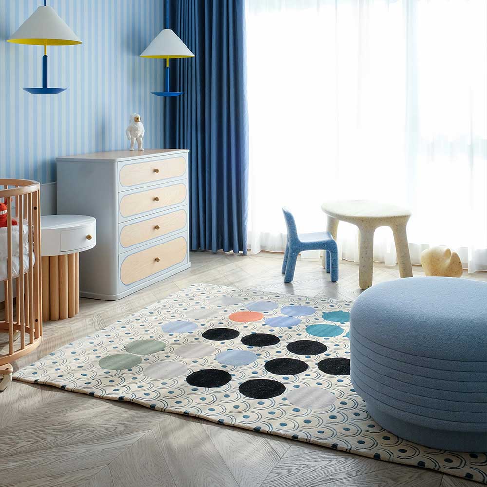 Japanese Abstractions日式抽像地毯系列涵蓋了九種花色。受達達主義女藝術家索菲亞陶貝爾-阿爾普(Sophie Taeuber-Arp)的啟發,設計師想像這位二十世紀的先鋒女性來到日本的藝術之旅。以索菲亞擅長的幾何圖形創作為靈感,每款地毯經在設計師的巧思安排下,以不同的抽象圖形與傳統日式圖案交織,簡約與抽象碰撞,讓東西方文化巧妙地交織。