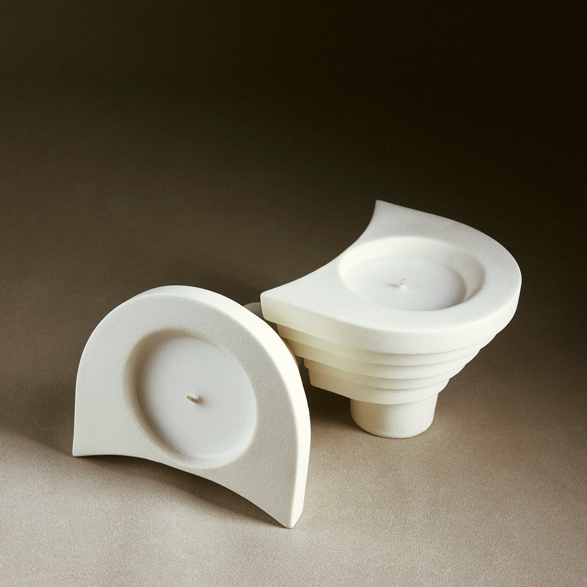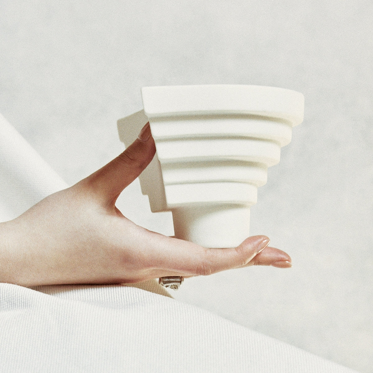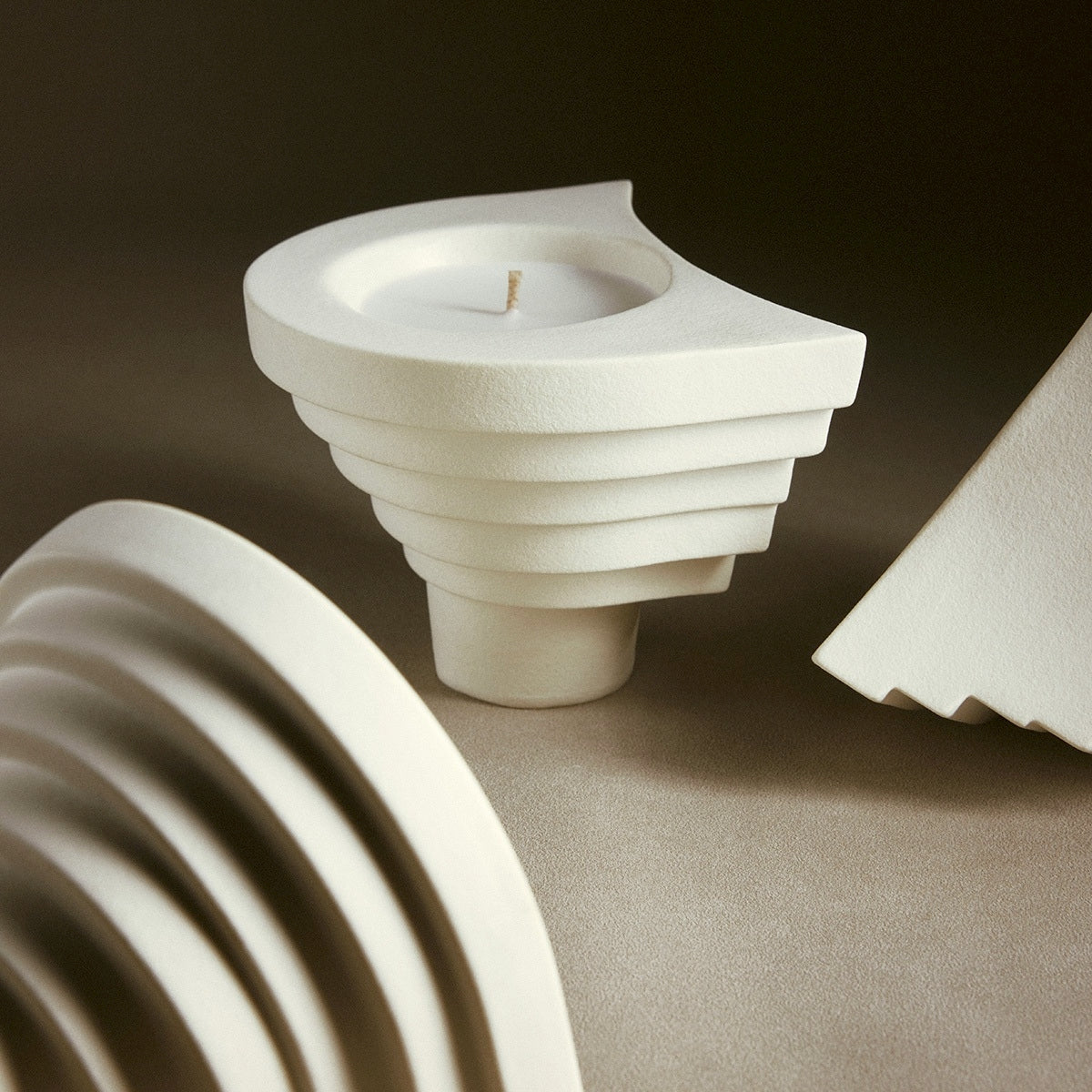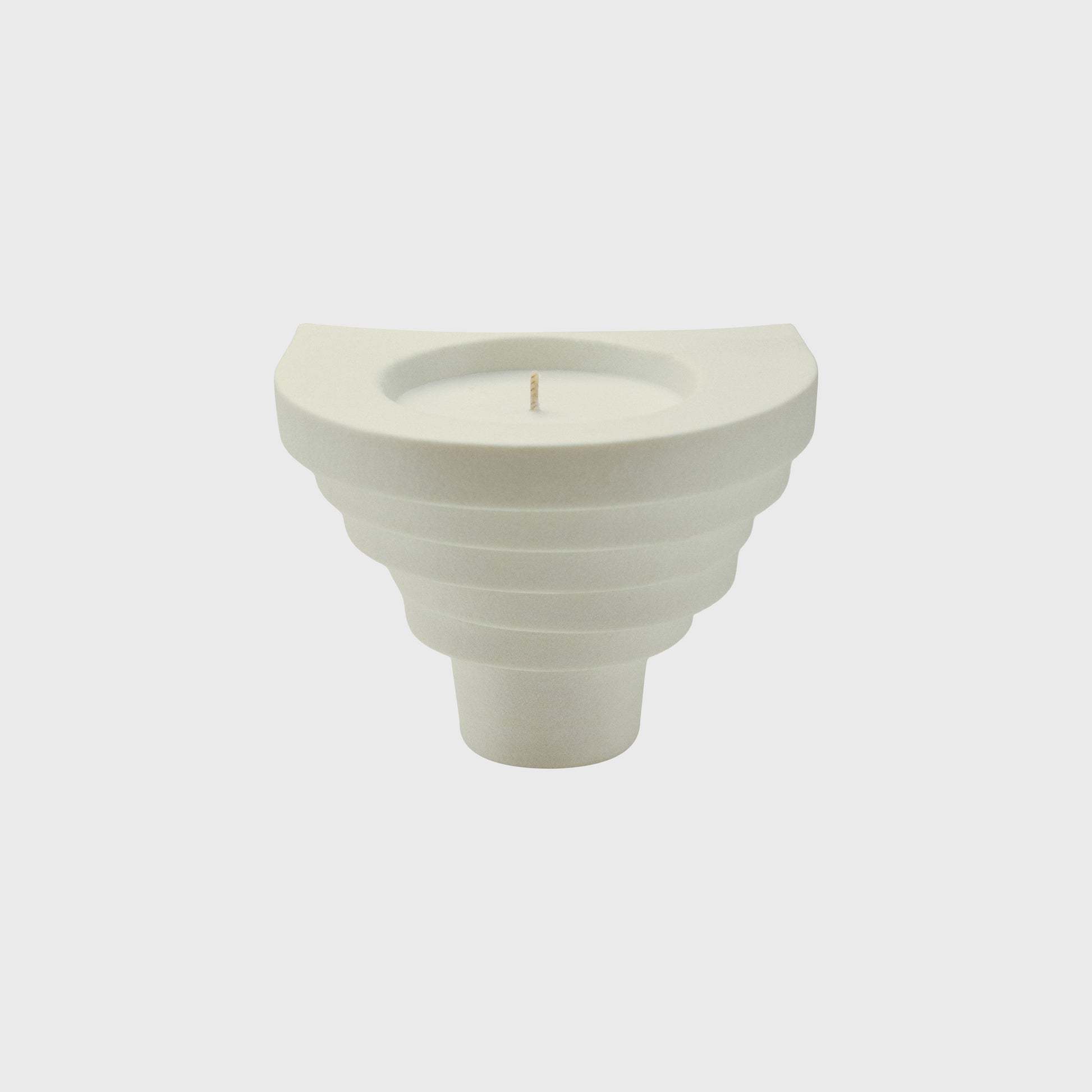 白燭台臨摹山形梯田的紋理,勾勒出一座靈性的精神廟宇。黔東南獨有喀斯特巖溶地貌,容器表層的本白釉面采樣自然巖石,模擬其細微結晶的顆粒質地,帶來可呼吸氣孔的自然手感。一呼一吸間,還原緩慢的生活肌理。