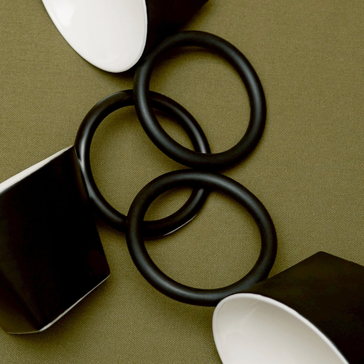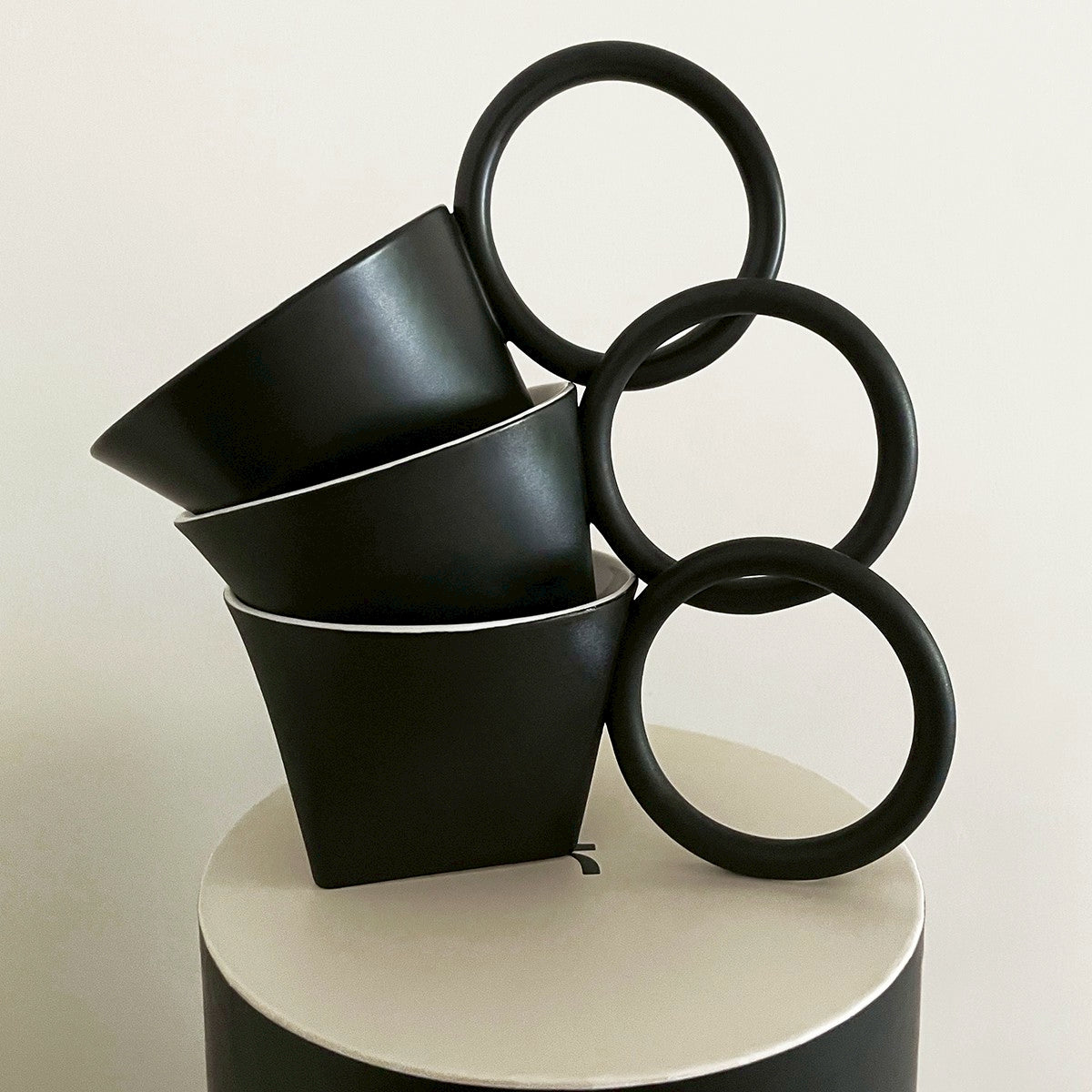 設計靈感源自黔東南苗族巨大銀環。杯耳結合耳環的概念,手柄為圓環,底座為三角,妙趣靈巧的幾何美學塑造出杯器的獨特造型,容器化身餐桌上兼具裝飾性與實用性的配飾。