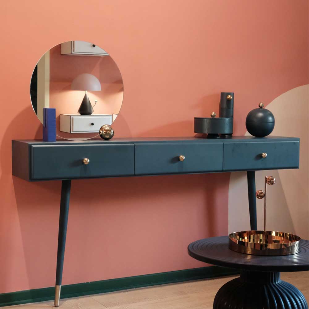 底座為黑色粉末噴塗飾面的金屬材質,黑色、藍色、黃色和紅色粉末噴塗飾面的金屬材質,鏡面為銀色金屬飾面。