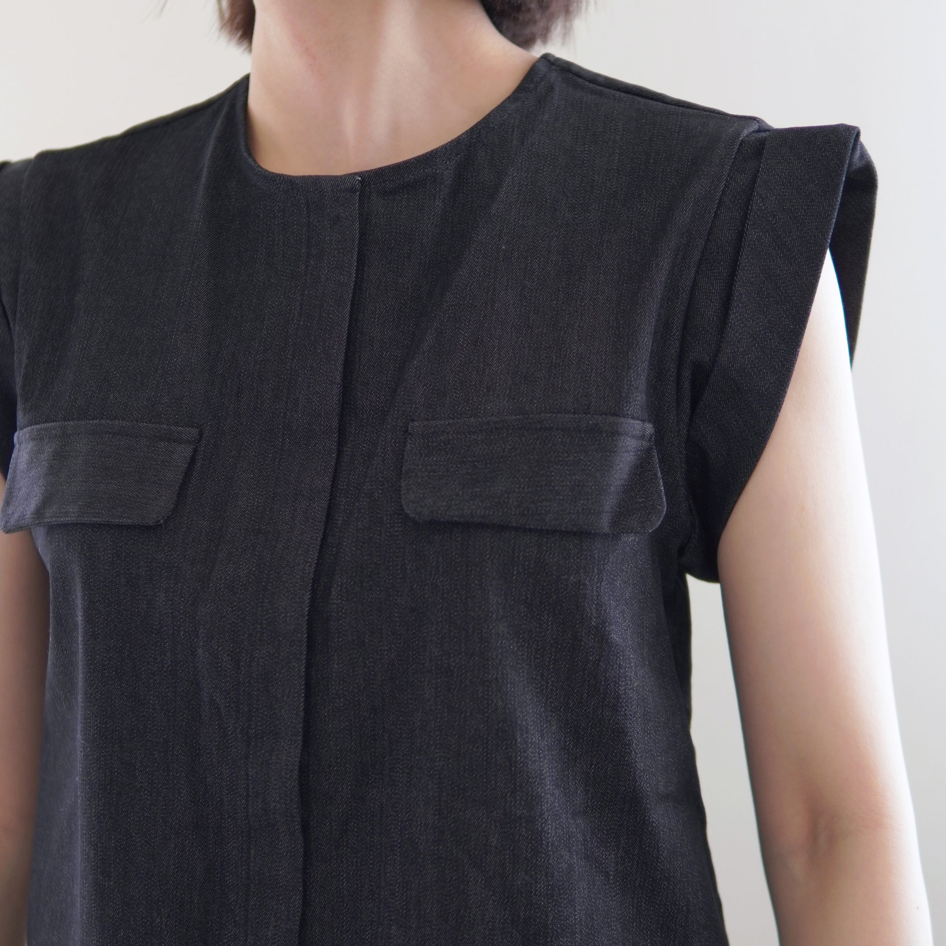 隆重介紹 CIREN 牛仔背心/襯衫,採用經典紐帶開合和實用的翻蓋貼袋設計。它採用捲邊袖子和背面開衩設計,增添舒適感和時尚感。