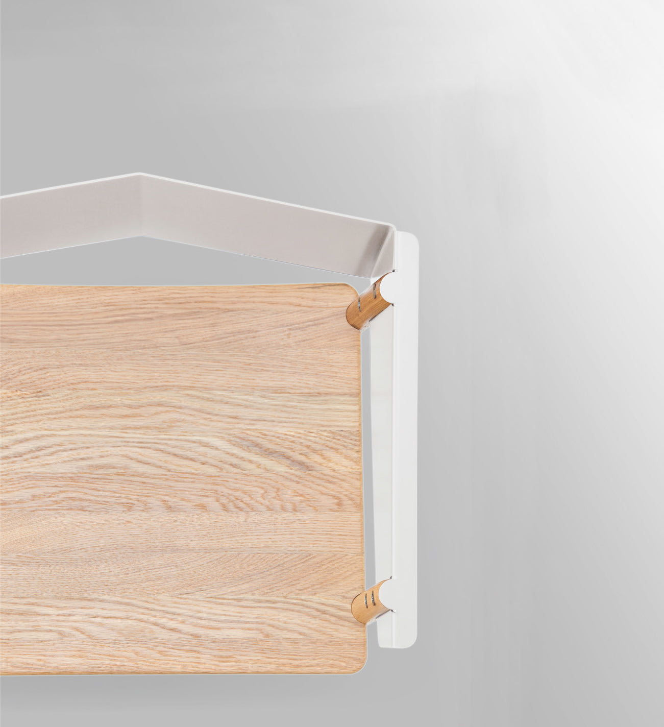 hyfen折點系列的美學觀點鉆研並遵循了材料本身的特性,極簡化了其組合構造並最大化的利用了材質的優點,點到為止的在突出材料本身特性的同時,完美地將白橡木與折板金屬恰到好處咬合在了一起。鈑金的“折點”遮檔住了椅腿尾端粗糙暗沈的木紋,同時良好的傳遞重量,兩種不同材質的“榫接”也符合受力穩定耐久,乾脆明了。