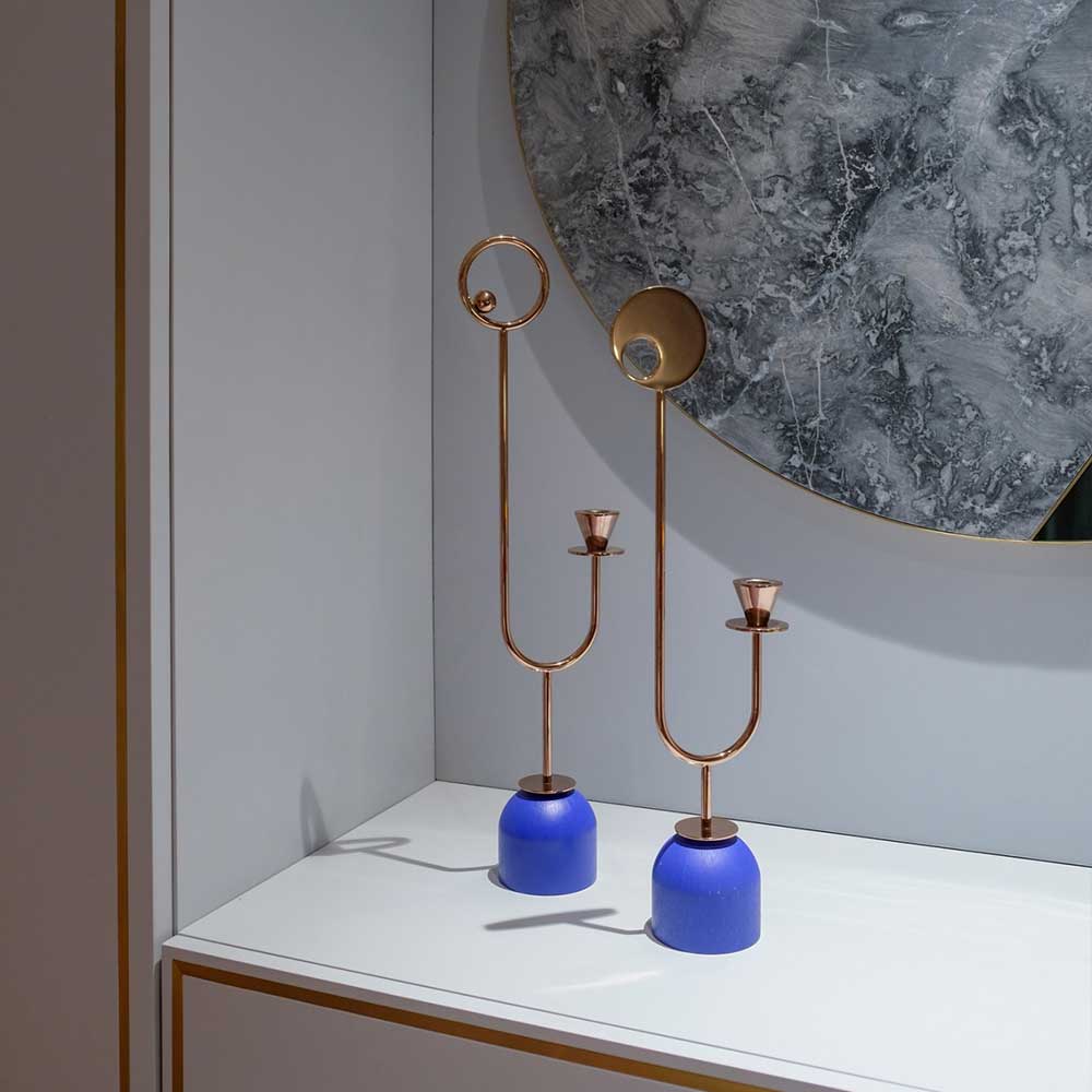 Paris-Memphis燭台系列汲靈感於1981年孟菲斯運動,同時也向主要發起人艾托索·特薩斯(Ettore Sottsass)致敬。設計上打破陳規,不受拘束的結構,自由大膽的線條感讓整個系列詼諧而充滿活力。 No.6和No.7燭台大膽採用了波普藝術風的亮色,傳達出明朗幽默的氣氛,而其他作品則別具用心地選用了粉彩色,輔以香檳、玫瑰金等金屬飾面,體現了裝飾藝術風格的優雅風韻。
