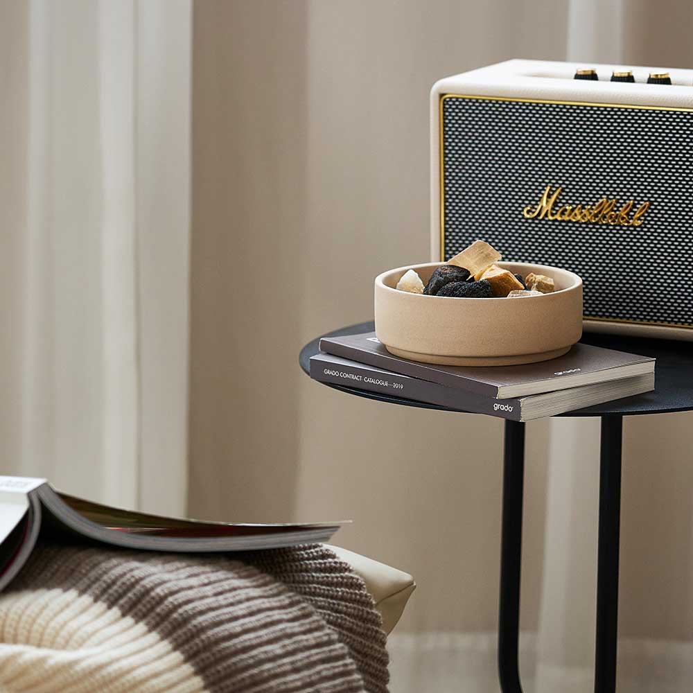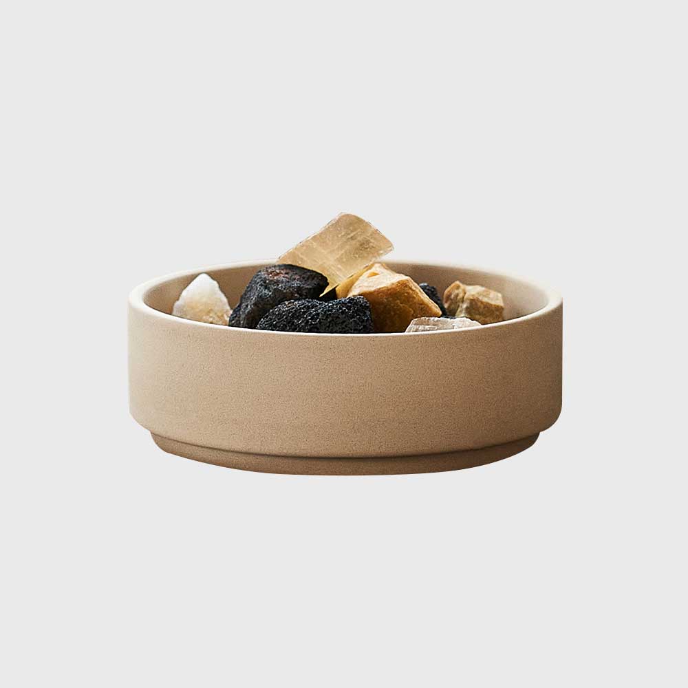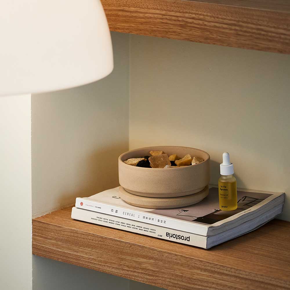 grado一貫的器型美學,圓形造型、素燒有色陶土質地,塑造極簡造型比例,選擇天然晶石混合火山岩擴香。以嗅覺為媒介,在香薰的儀式感衝想像寬廣宇宙的恒久悠長。