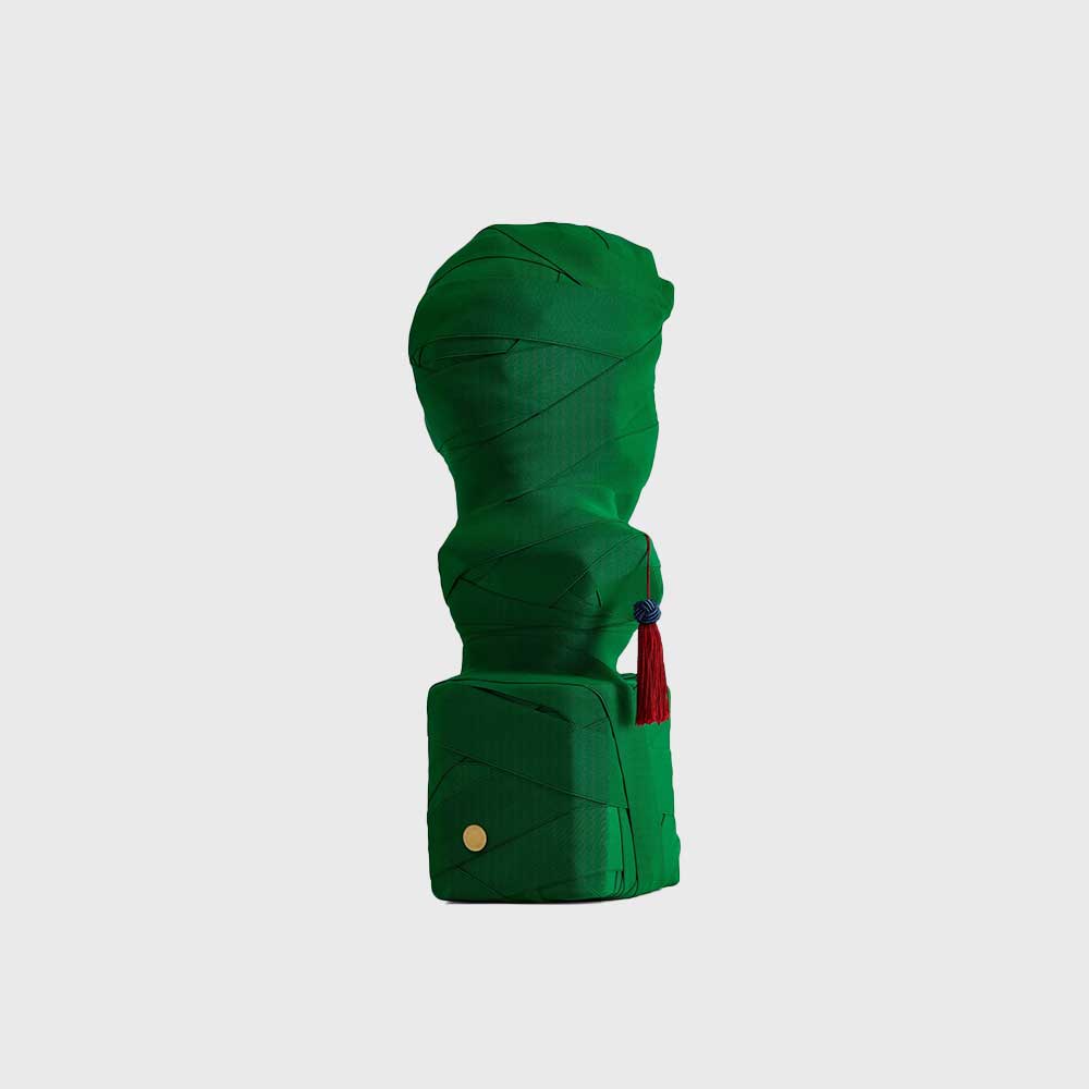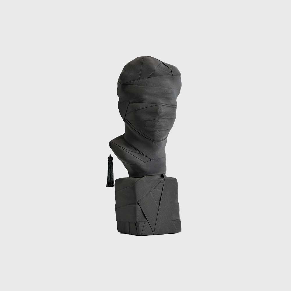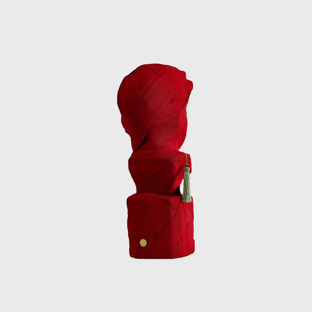 在每一段古老的西方文明史上,雄偉的雕像與精湛的藝術品被作為紀念和傳世那些英雄人物的媒介。 THIS IS NOT A SELF PORTRAIT挑戰傳統,透過繃帶將英雄人物的臉遮掩住,從而營造出一種讓人玩味的氛圍。同時,懸掛著的中國結增添了東方色彩,象徵了重新演繹西方藝術的概念。每一件作品都是手工製作,為所處空間增添一抹獨特的點睛之筆。